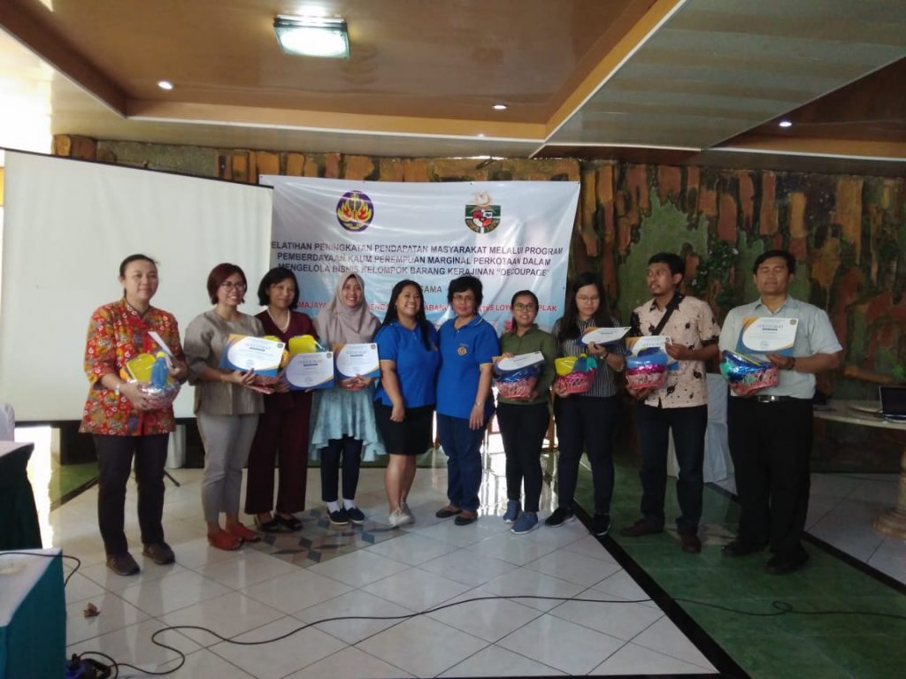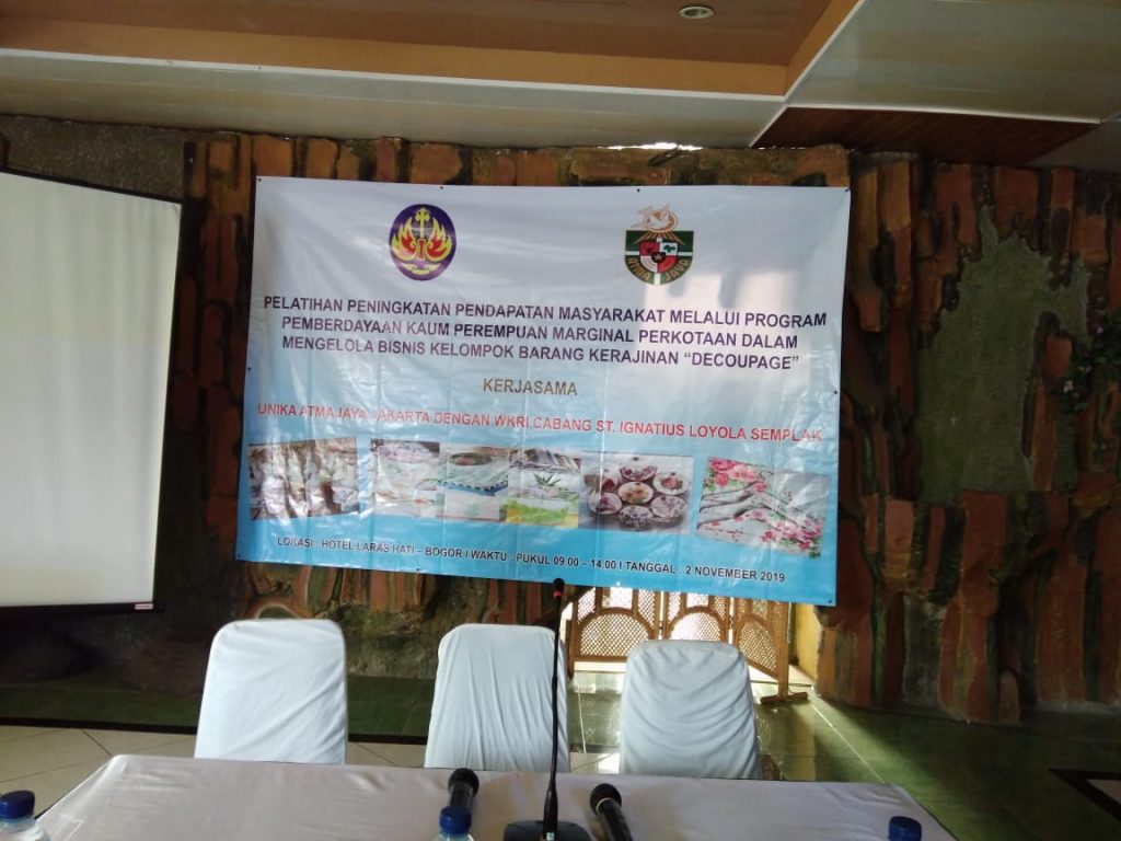 Pada sabtu 2 November 2019 ,WKRI DPC Semplak bekerja sama dengan unika Atmajaya mengadakan pelatihan pemerdayaan kaum perempuan marginal perkotaan dalam mengelola bisnis kolompok barang kerajinan “DECOUPAGE” Selain dihadiri oleh ibu 2 WKRI sendiri hadir pula peserta umum yang tertarik untuk belajar teknik teknik dasar “DECOUPAGE”.