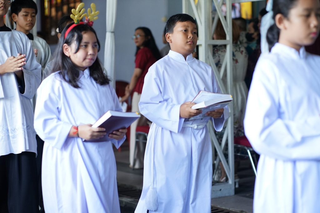Sementara itu, koor misa dipercayakan kepada anak-anak SEKAMI, yang dengan suara riang dan penuh semangat mengiringi perayaan Ekaristi. Lagu-lagu Natal yang dibawakan menambah suasana sukacita dan membantu umat, khususnya anak-anak, untuk semakin menghayati makna Natal.