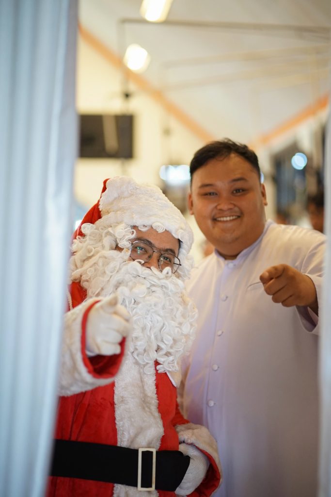 Usai perayaan misa, sukacita Natal semakin terasa dengan kehadiran Santa Klaus yang disambut meriah oleh anak-anak. Santa Klaus membagikan hadiah dan mengajak anak-anak untuk foto bersama, menciptakan momen kebersamaan yang penuh tawa dan kegembiraan.